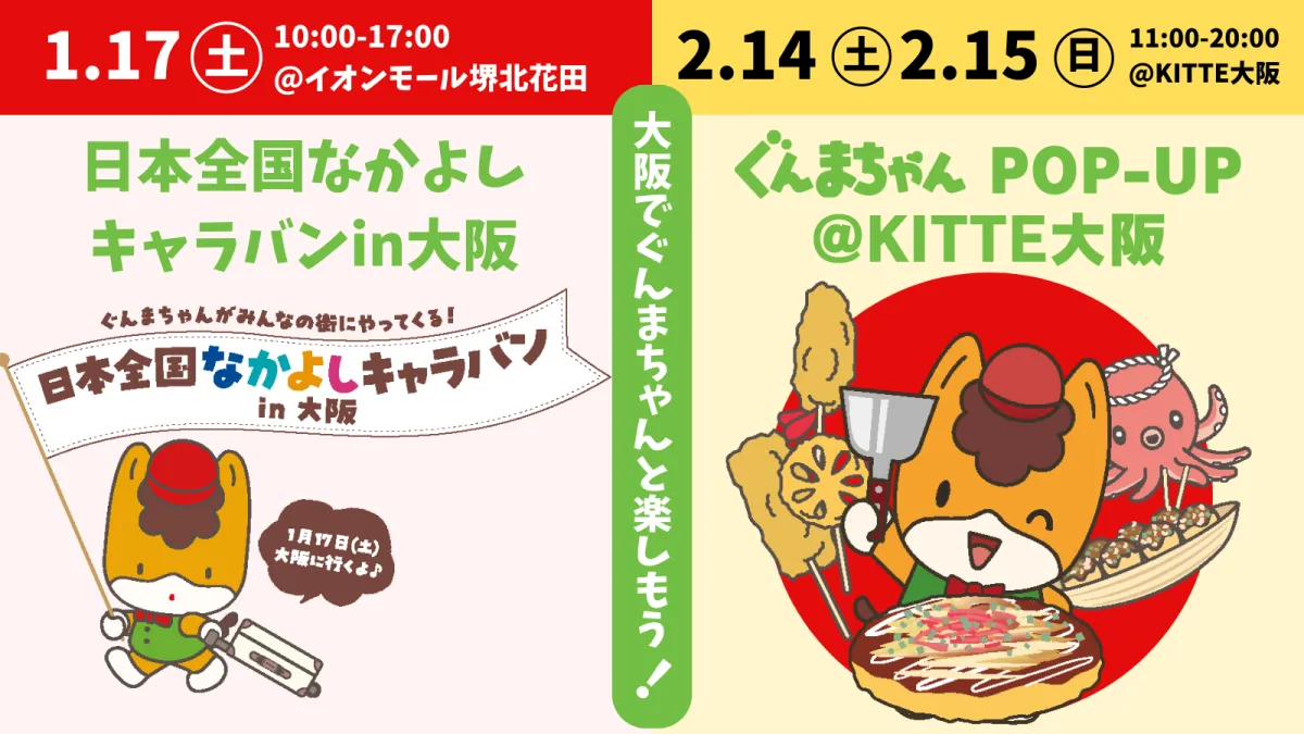 大阪での盛り上がりを期待し、みんなでぐんまちゃんに会いに行こう!