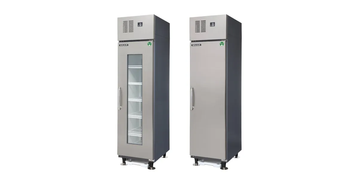 新型ジョッキクーラーは、フクシマガリレイグループの「Dramatic Future 2050」ビジョンに基づいて、冷媒をノンフロンのR1234yfに変更しました。この新冷媒は地球温暖化係数(GWP)が1と非常に低いため、地球環境に優しい製品となっています。従来のR404Aと比較して、温暖化係数は著しく低下しており、フロン排出抑制法の対象外となるため、管理義務も軽減されます。