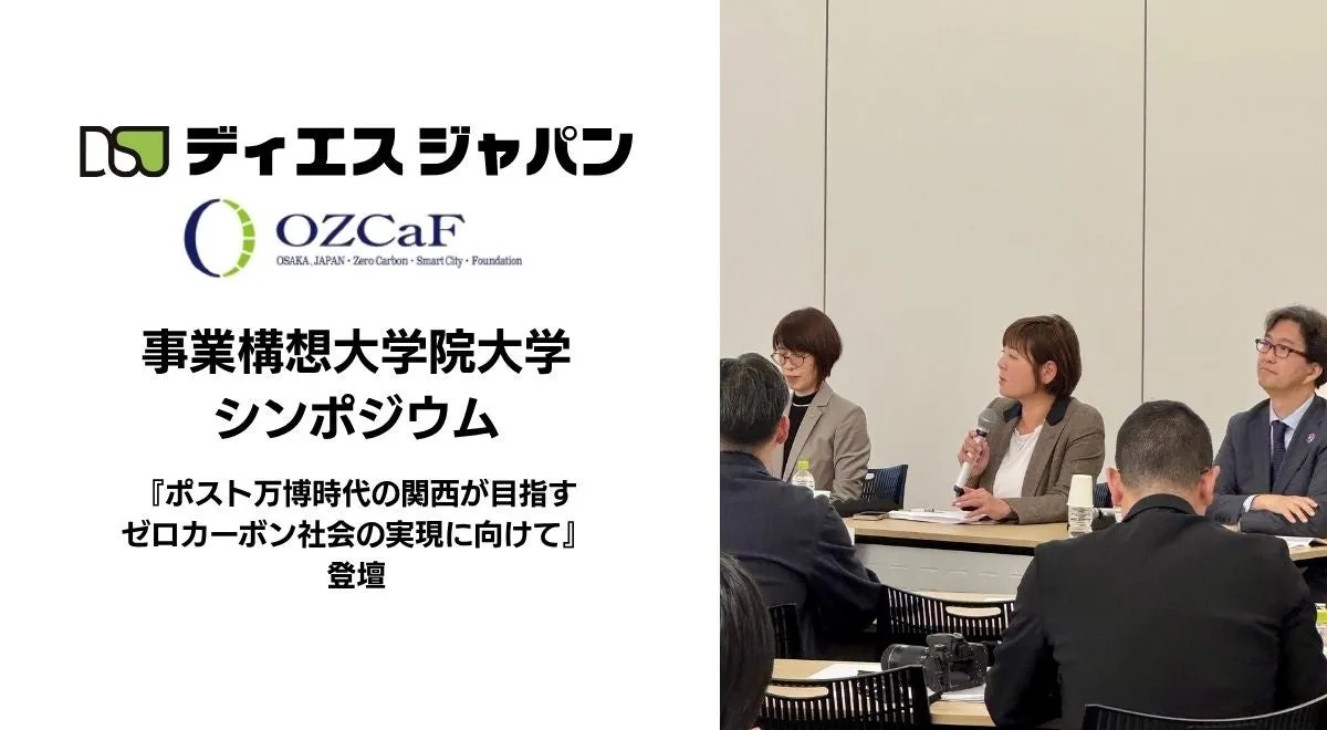 大阪府で開催されたシンポジウム「ポスト万博時代の事業構想」において、株式会社ディエスジャパンの代表取締役北條陽子がゼロカーボン社会実現に向けた「環境人財」の育成について語りました。このシンポジウムは、大阪ゼロカーボン・スマートシティ・ファウンデーション(OZCaF)との共同で行われ、多くの業界関係者が参加しました。
