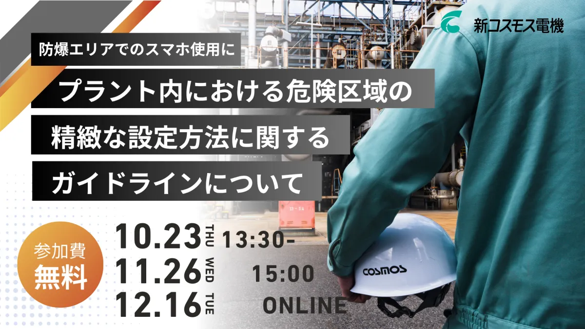 新コスモス電機株式会社が主催する無料オンラインセミナーが注目を集めています。セミナーは2025年の10月23日、11月26日、12月16日に開催され、「プラント内における危険区域の精緻な設定方法に関するガイドライン」がテーマとなっています。経済産業省が発表したガイドラインを深堀りし、防爆エリアの見直しを通じて、これまで使用できなかったスマートフォンやタブレットの利用についても解説されます。