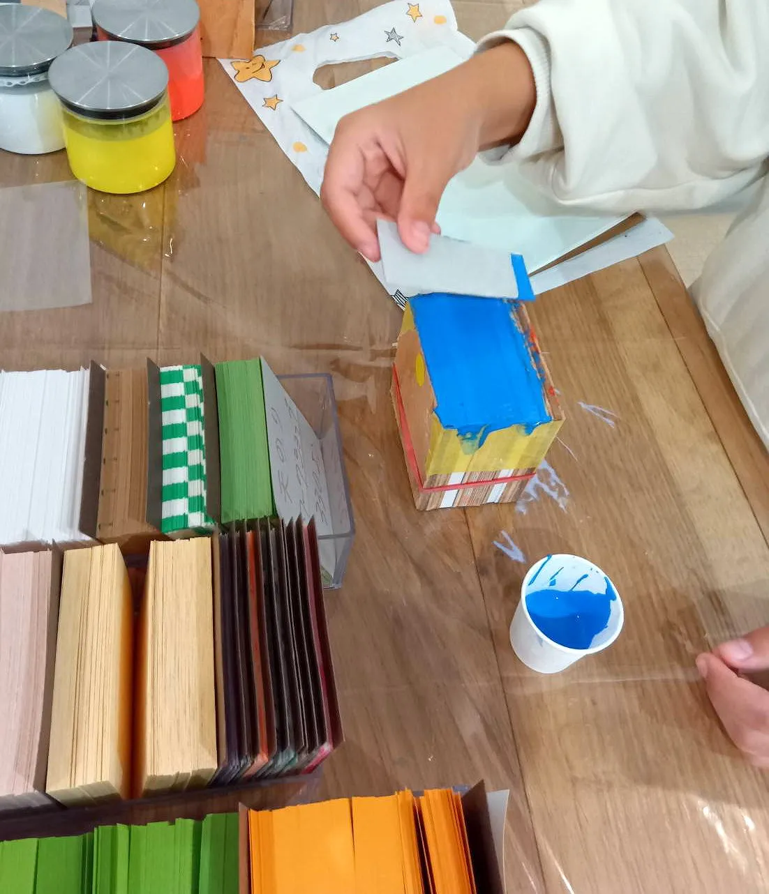 今回のワークショップでは、地元のクリエイターがデザインを手がけた50種類以上の本文用紙から自由に選ぶことができる、まさにメモ用紙のビュッフェスタイルです。お好きな色の糊を選び、自分だけのオリジナルメモ帳を作ることができます。カラフルな糊の色をカスタマイズして、世界に一つだけの作品を完成させましょう。