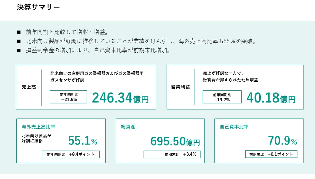 新コスモス電機株式会社は、2026年3月期の第2四半期(中間期)決算を発表しました。当社は大阪市に本社を置く企業で、創業以来「世界中のガス事故をなくす」という大目標を掲げており、家庭や産業向けのガスセンサやガス警報器を展開しています。