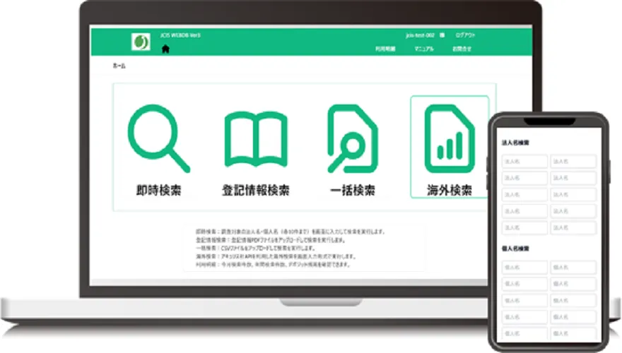 このように、JCIS WEB DBは広範な情報を駆使してリスクチェックを行い、企業が抱える可能性のあるリスクを事前に把握できるよう支援しています。加えて、マニュアルでの検索の煩雑さを解消するため、CSV一括検索や登記情報との連携機能もあり、実務の効率化を図ることができます。