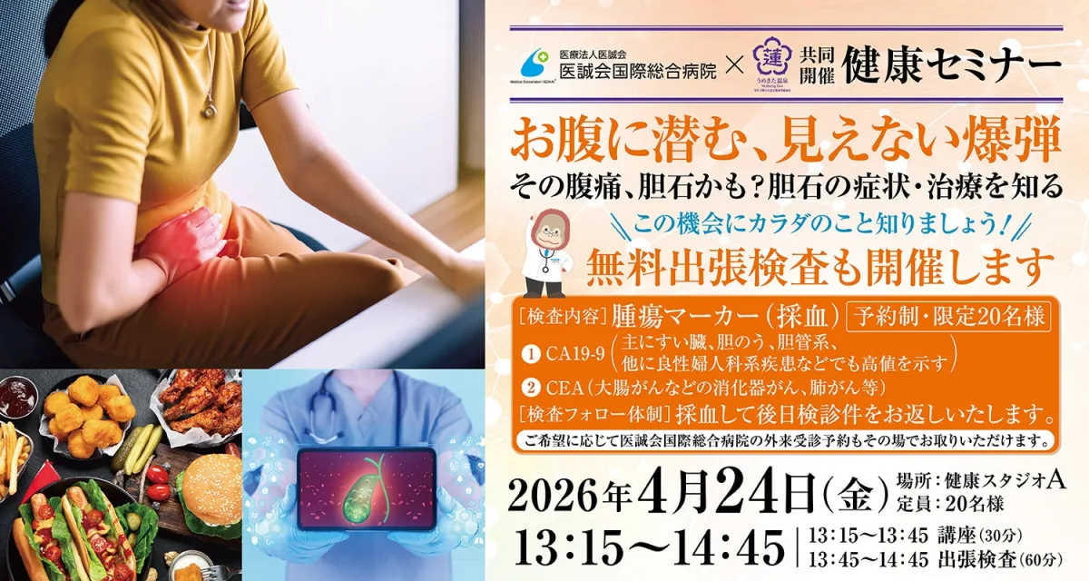今回のセミナーのテーマは、「その腹痛、胆石かも?胆石の症状・治療を知る」となっています。講師には、医誠会国際総合病院消化器外科の川本雅彦医師を迎え、胆石の原因や症状、治療法について丁寧に解説していただきます。胆石とは基本的に胆のうに石が形成される病気であり、突然の腹痛や吐き気を引き起こすことがあるため、注意が必要です。