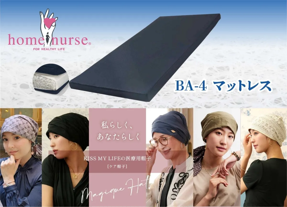 今回の展示会では、田村駒が出資する株式会社TOKIMEKU JAPANのがんケア用品ブランド「KISS MY LIFE」の製品群も紹介します。「KISS MY LIFE」は主にECサイトで販売されており、その中でも抗がん剤治療中に髪が抜けた際のオシャレながんケア帽子には特に力を入れています。形、柄、素材感にまでこだわり、幅広い商品を揃えています。この他にも、パジャマやインナー類、入院用シューズ、杖など、多岐にわたるアイテムを展示する予定です。