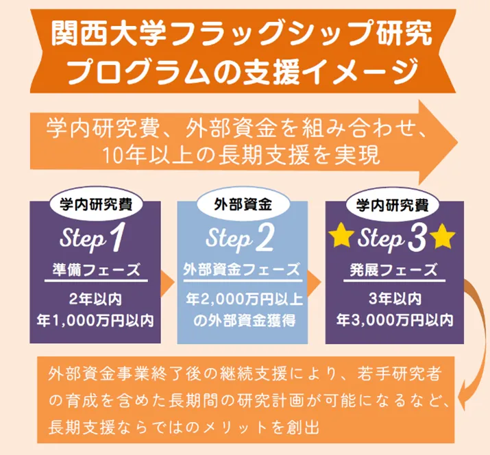 関西大学の高橋智幸学長は、「少子化による受験生の減少という逆風の中でも、大学の発展には研究力の強化が必要です。本制度は、外部資金の獲得後も長期間にわたる支援を行うことで、若手研究者の育成や持続的な研究計画の実現を可能にします。これにより、これまでにない研究プロジェクトが展開され、大学の研究力を一層高められることが期待されます」と述べています。