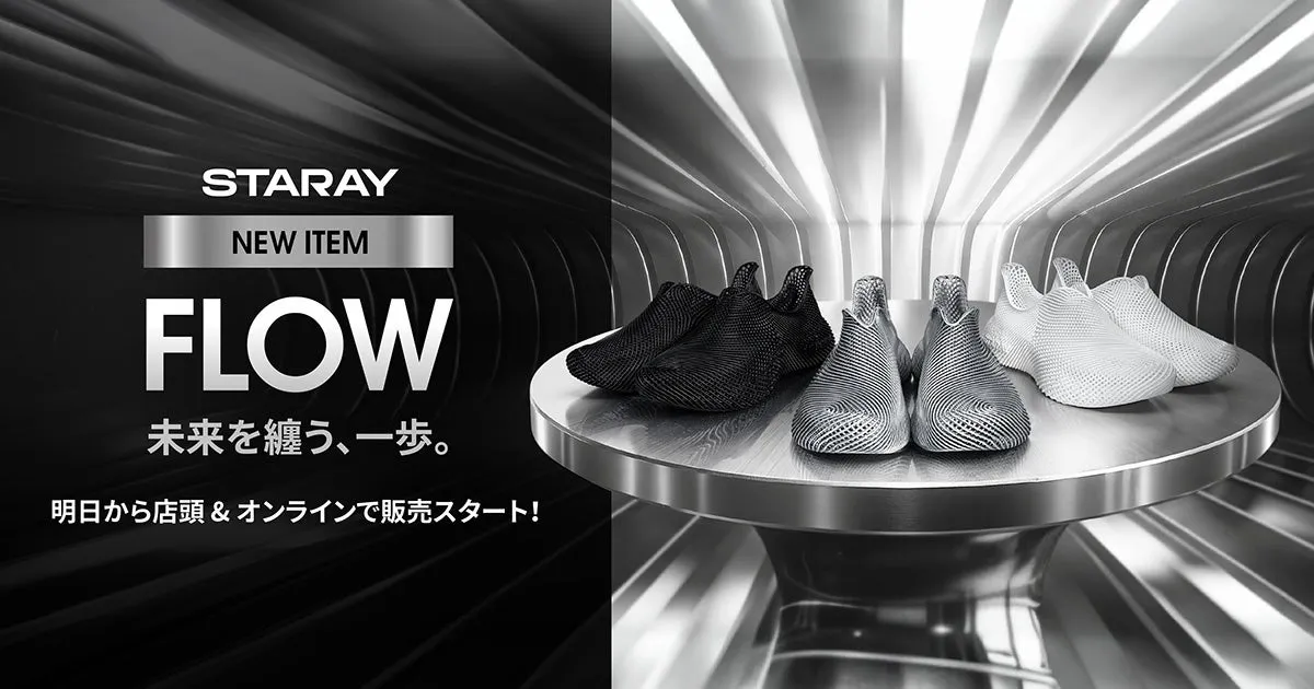 APPLE TREE株式会社が誇る3Dプリントシューズブランド「STARAY」から、期待の新モデル『FLOW』が2025年11月1日(土)に発売されます。このスニーカーは、都市生活にぴったりの「Urban Futuristic(アーバン・フューチャリスティック)」シリーズの最新作で、単なる履物に留まらない未来的なデザインと快適な履き心地が特徴です。