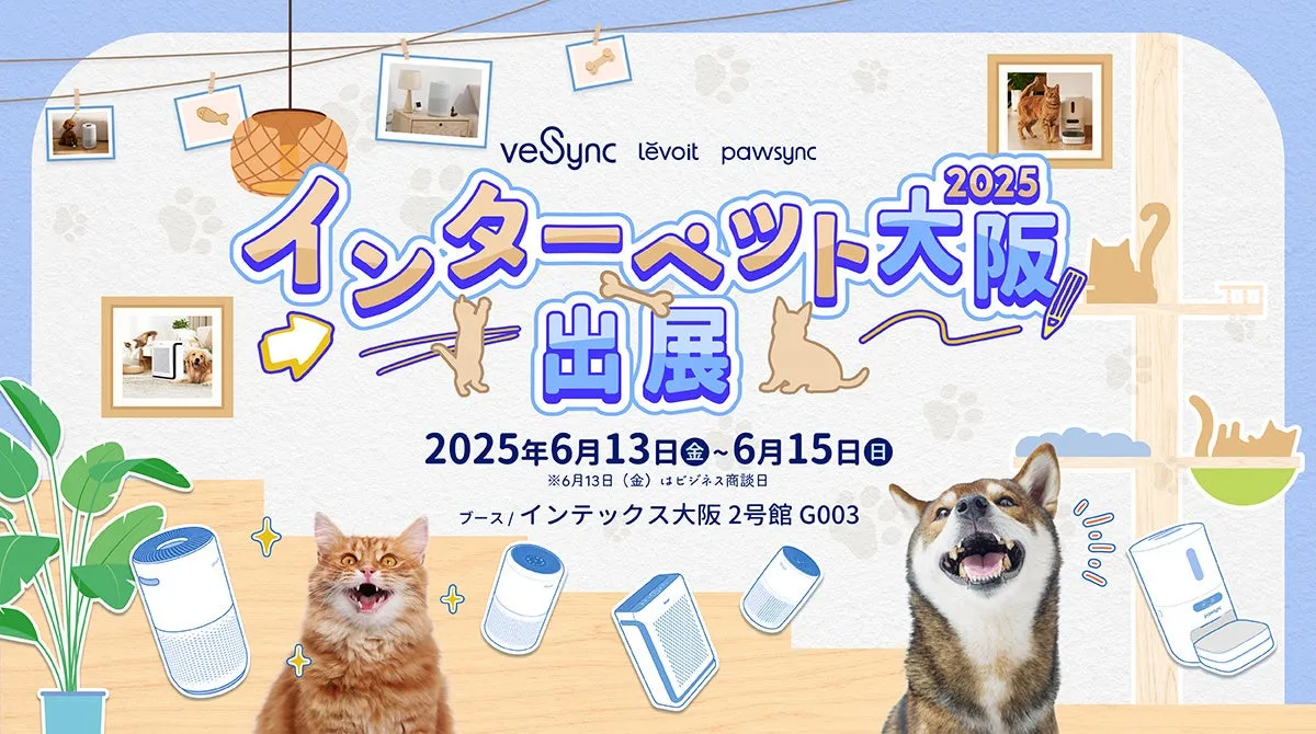 アメリカの小型家電メーカーVeSync(ウィーシンク)は、日本支社であるVeSync Japan株式会社を通じて、2025年6月13日から15日にかけて開催される「第3回インターペット大阪」に出展します。このイベントは、ペット愛好者や業界関係者が一堂に会する大規模な展示会で、VeSyncも注目の新製品や便利なアイテムを披露します。