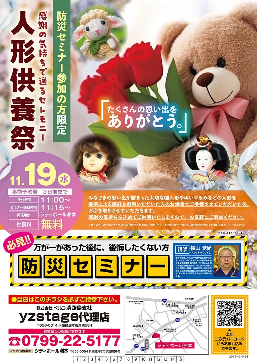 2025年11月19日(水)に、兵庫県洲本市にて特別なイベント、「人形供養祭」と「防災セミナー」が同時に開催されます。このイベントは、地域における感謝と安全をテーマにしたもので、企業のベルコが主催しています。