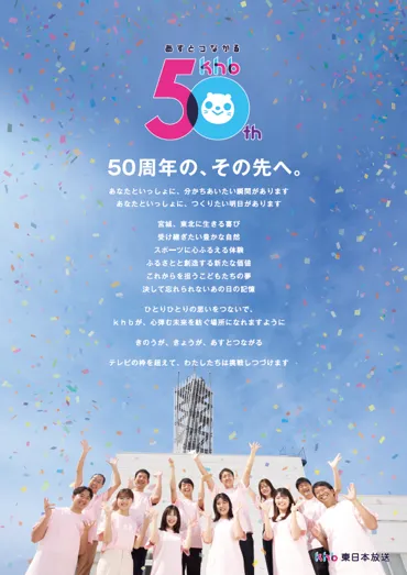 2025年10月1日、株式会社東日本放送(通称:khb)は、開局50周年を迎えました。1975年に宮城県仙台市青葉区上杉でスタートを切ったこの放送局は、地域の皆さんに寄り添い、豊かなコンテンツを提供し続けてきました。現在、社屋は仙台市太白区あすと長町に移転し、新たなスタートを切っています。