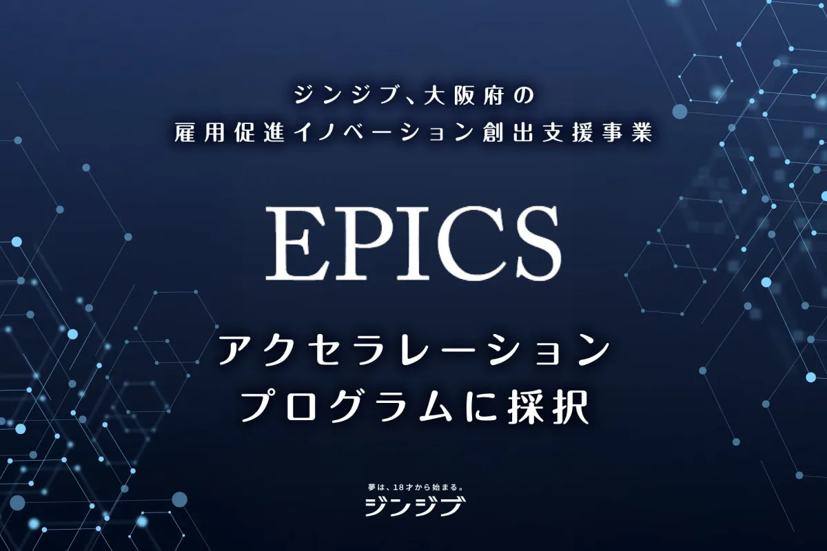 株式会社ジンジブ(大阪市)は、大阪府が主催する雇用促進イノベーション創出支援事業『EPICS』のアクセラレーションプログラムに選出されました。このプログラムは、大阪府内の高校生や若者のキャリア支援を強化し、新しい人材を育成することを目的としています。