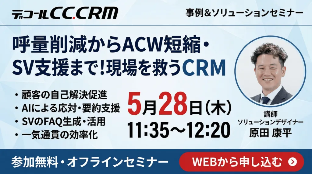 このセミナーは、従来のコールセンター業務を根本から変える可能性を秘めています。AIや新しいデジタル技術を活用した効果的なCRMの運用がもたらす未来を、一緒に体験してみませんか。お見逃しなく!