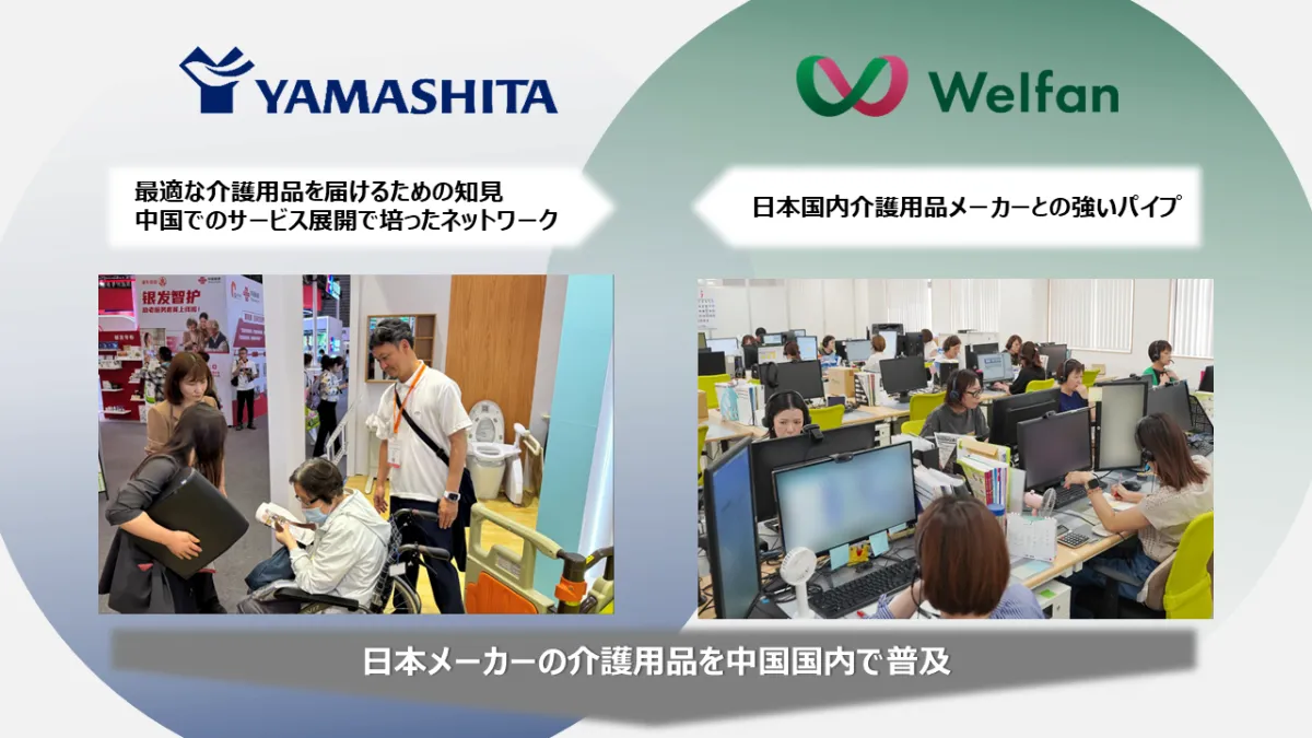 このような市場背景の中、介護やリハビリ関連の市場規模は2025年には1.8兆元(約36兆円)に達し、2030年にはさらに倍増する見込みです。ヤマシタとウェルファンは、この大きな市場に向けて日本式の介護ノウハウを持ち込むことによって、日系製品の普及を実現したいとしています。