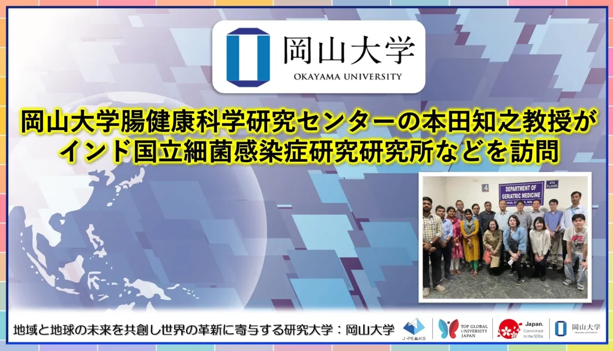 国立大学法人岡山大学の本田知之教授が、2026年3月にインド・コルカタを訪れ、国立細菌感染症研究研究所などでウイルス感染症に関する共同研究に話し合いを持ちました。この訪問は、腸健康科学研究センターの一環として行われ、インド国内のさまざまな施設での視察も行われました。