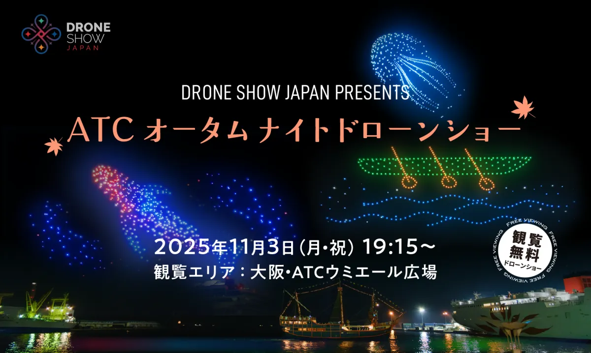 2025年11月3日(月・祝)、大阪・ATCウミエール広場にて開催される「ATCオータムナイトドローンショー」は、国産ドローンショー専用機体『DSJ MODEL-X』を駆使して行われる、視覚的に魅力的なイベントです。このイベントは、夜空に無数のドローンが舞い上がり、大阪港にちなんだテーマや海の仲間たちの物語を表現します。