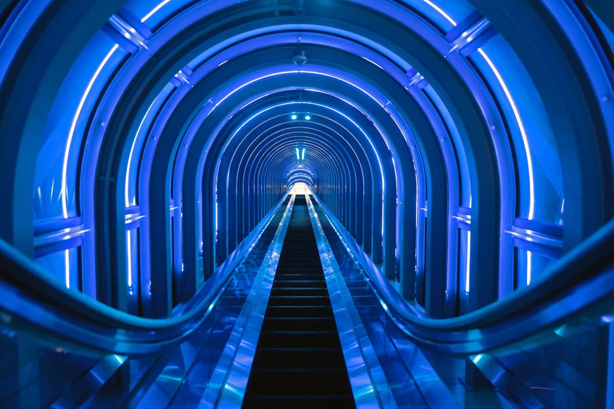 星空に導かれる道の先には、さらに39階へと続く空中エスカレーターがあります。このエスカレーターはLEDの光に包まれ、まるで光のトンネルを進んでいるかのよう。移動するその時間すらも特別な体験に変えられ、心に残る思い出を与えてくれることでしょう。