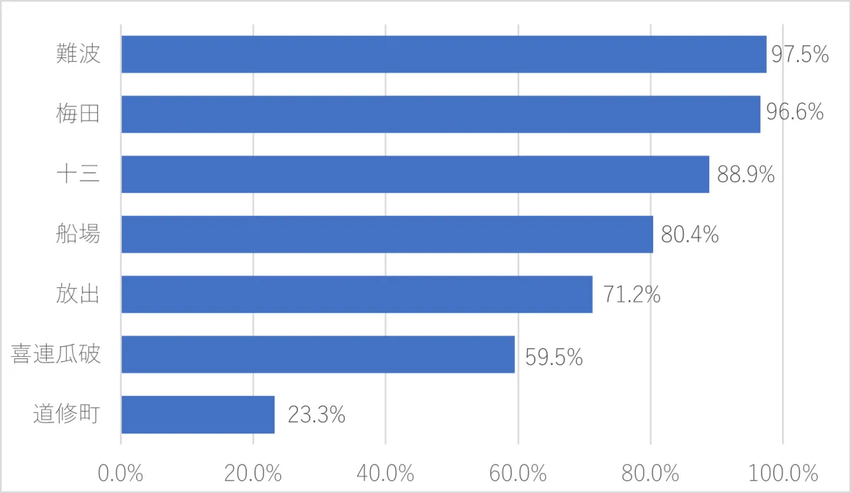 特に驚くべきは、道修町を「どしょうまち」と正しく読めた人の比率が23.3%と、調査開始以来最低の数字を記録したことです。年代別に見ると、若い層の読解力の低下が顕著であり、60歳以上の層でも正答率が50.5%に落ち込むなど、関心を持つ人の年齢層が広がっているのがわかります。