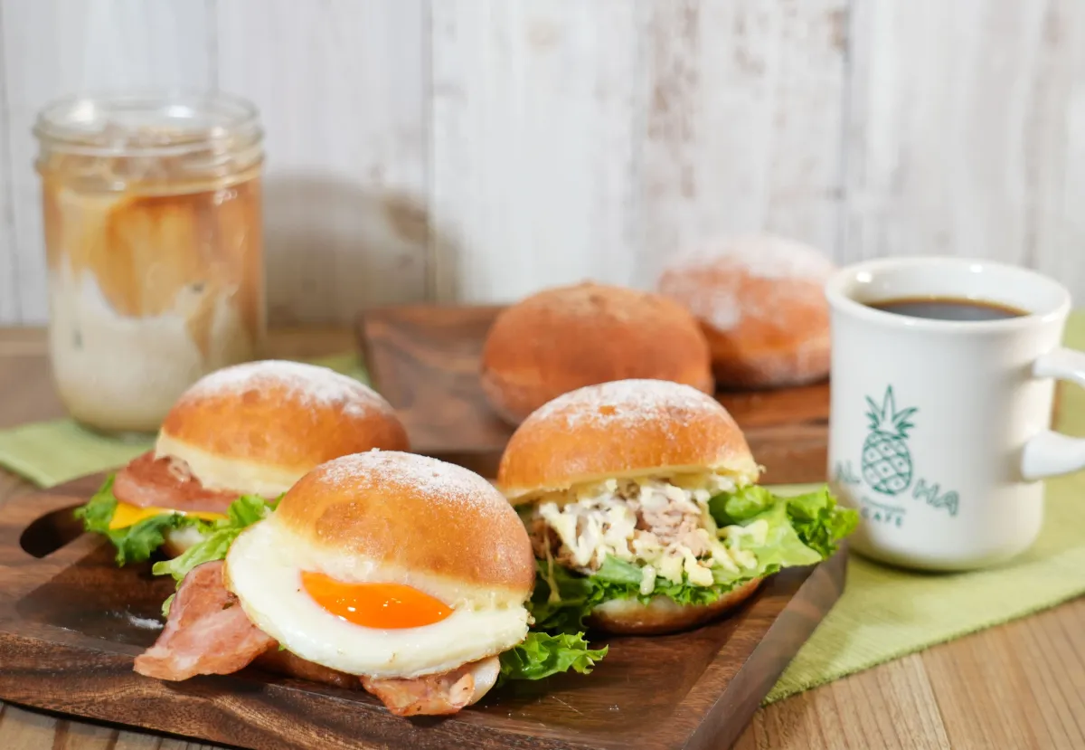 そして、11月1日からは、待望のモーニングメニューがスタートします。このメニューは、週末の土日祝限定で提供される特別なもので、何と「具材入りマラサダサンド」が含まれています。ハワイの定番料理であるスパムやベーコンエッグを、ふわふわのマラサダでサンドした新しいスタイルが魅力です。