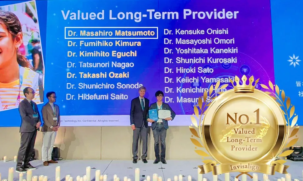 松本総院長は、「今回、日本で最も長くインビザラインを提供してきた医院として認められたことは、大変名誉なことです。20年前、まだマウスピース矯正が知られていなかった頃から、私たちは常に患者様の負担を減らし、美しい笑顔を提供するために努力を重ねてきました。今後も得たデータとデジタル技術を駆使し、安心で確実な矯正治療の提供を続けます」と語っています。