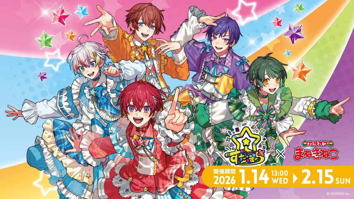 2026年1月14日から2月15日までの期間、2.5次元アイドルグループ「すたぽら」が、全国展開のカラオケチェーン「カラオケまねきねこ」と手を組み、特別なコラボレーションイベントを開催します。このコラボは、彼ら初となるホールワンマンライブ『StarLight PolaRis One Man Live in パシフィコ横浜 Sirius / Orion』に向けた特別企画で、ファンの期待感を一層高める内容になっています。
