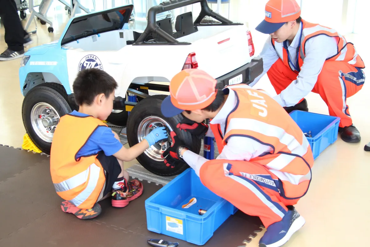 小学生(1~6年生)を対象に、JAF隊員の仕事を体験できるプログラムです。参加者は、簡単なテストに挑戦したり、特別な体験を通じて学びながら、楽しむことができます。