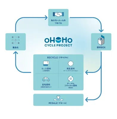 生活者が手軽に使用済みの衣類を回収できる拠点を設置します。また、回収した衣類は適切に選別し、リサイクルに回す流れを確立。