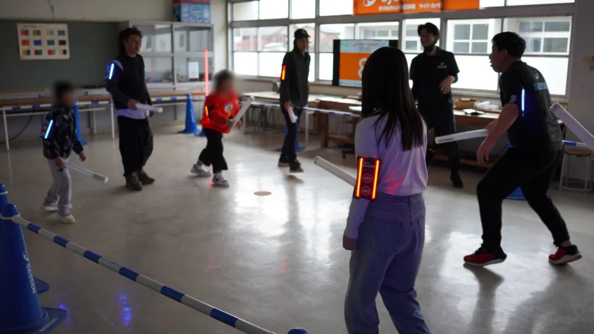 「SASSEN」は、安全なセンサー内蔵の刀を使用し、アプリによる自動判定を通じて1対1のデジタルチャンバラを楽しむことができる新しいスポーツです。一方、「Cyber KASSEN」は、Wi-Fiを利用して多人数での同時対戦を可能にし、戦略と思考力、チームワークが求められる集団戦が特徴です。これらは教育や地域のイベント、企業研修などでも活用されており、幅広い年齢層に楽しんでもらえるアクティビティです。