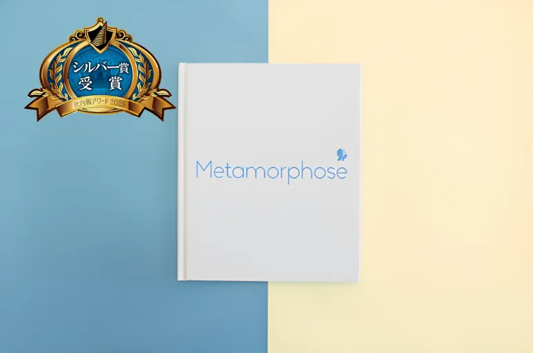 2025年度の社内報アワードにおいて、シマダグループのコンセプトBOOK「Metamorphose」が特別部門でシルバー賞を受賞しました。これはシマダグループが不動産事業を開始してから50年となる今年、その歴史を振り返り、未来を見据えた重要な一冊として製作されました。「Metamorphose」の誕生には、企業としての成長や変化に対する強い思いが込められています。