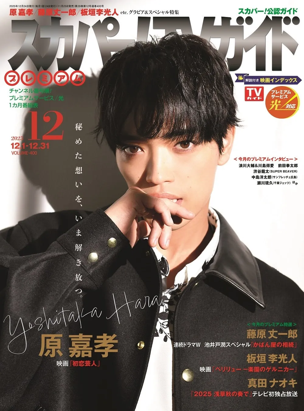 2025年11月25日に発売される「スカパー!TVガイドプレミアム12月号」の表紙には、映画初主演を果たしたtimeleszの原嘉孝が飾ります。原は12月19日に公開予定の映画「初恋芸人」で夢と恋に悩む売れない芸人を演じています。彼の役作りやこの映画への思いについてのインタビューも必見です。