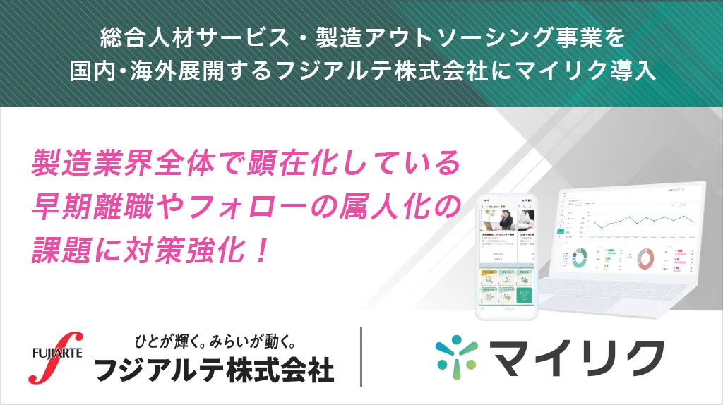 大阪市に本社を構えるフジアルテ株式会社では、製造業界の従業員の定着支援を目的としたツール『マイリク』を導入しました。本記事では、その背景や導入のメリット、具体的な機能について詳しく解説します。