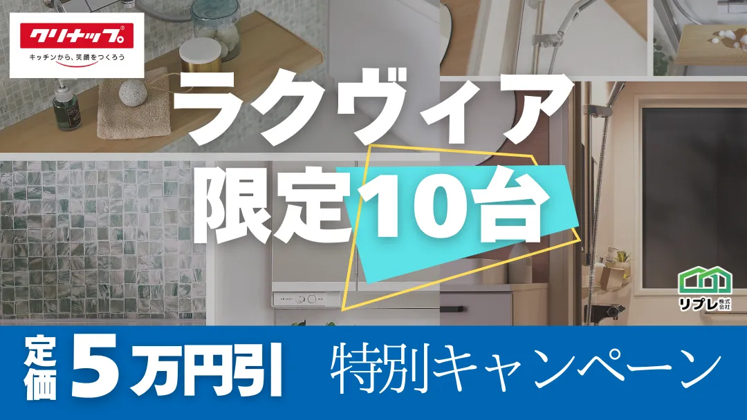 - - 内容:クリナップの「ラクヴィア」本体を10台限定で定価から50,000円割引!