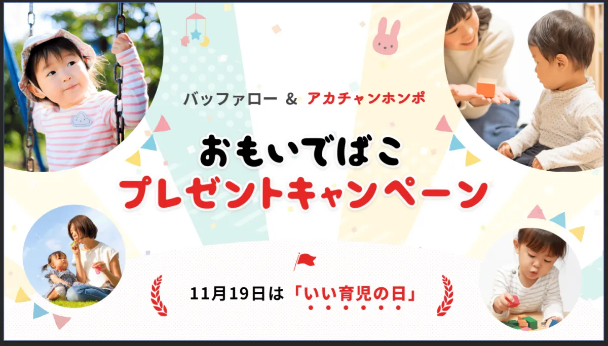 11月19日は、語呂合わせから名付けられた「いい育児の日」。この日に合わせて、株式会社バッファローと株式会社赤ちゃん本舗が共に育児支援のためのプレゼントキャンペーンを展開しています。キャンペーンの目玉は、写真やビデオを整理し、家族で楽しむことができるデジタルフォト・アルバム「おもいでばこ」です。これを抽選で2名にプレゼントします。