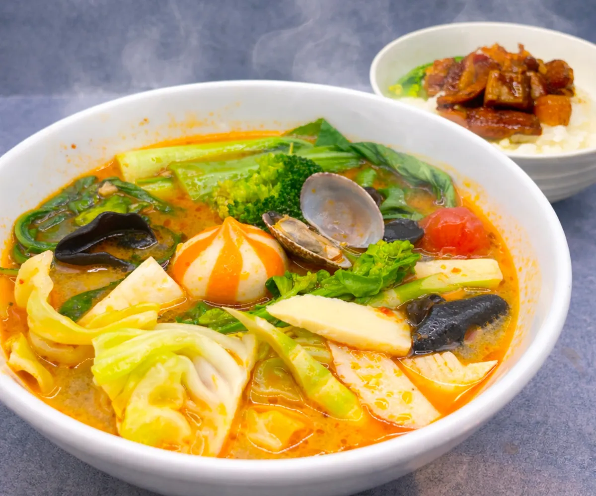 春の麻辣湯とミニルーローハンのこの美味しいランチセットは、なんとたったの1,200円で提供される。通常の麻辣湯にミニルーローハンを加えることも可能で、その場合は+200円にて楽しむことができる。