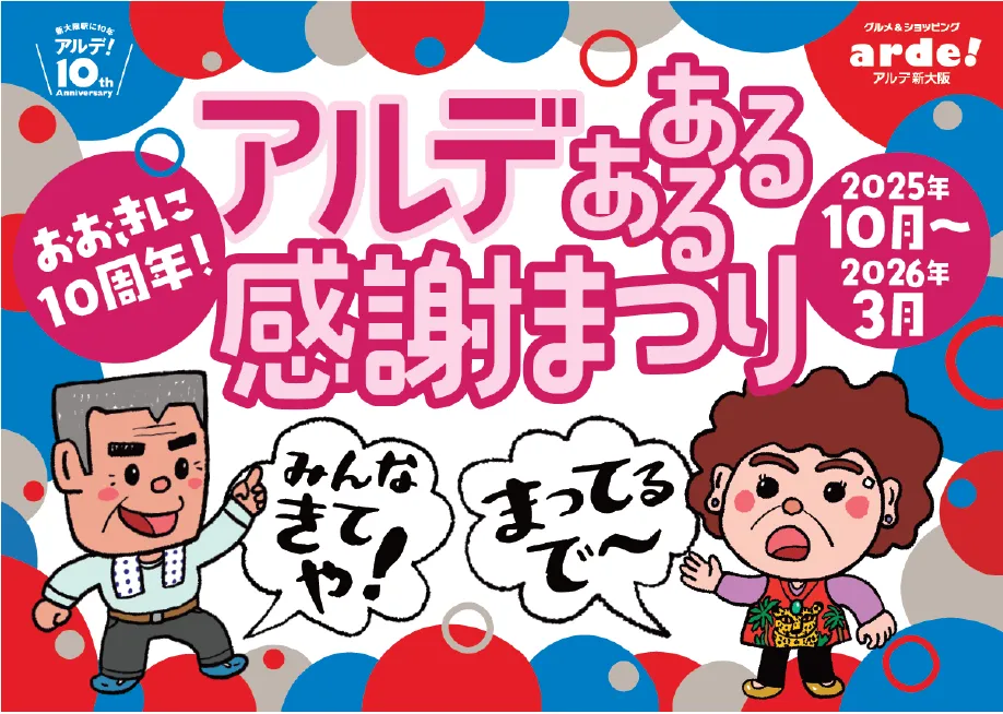 10周年を迎えて、喜びの瞬間を皆さまと分かち合えることを心より楽しみにしています。この機会にぜひ、アルデ新大阪でのショッピングとグルメをお楽しみください!