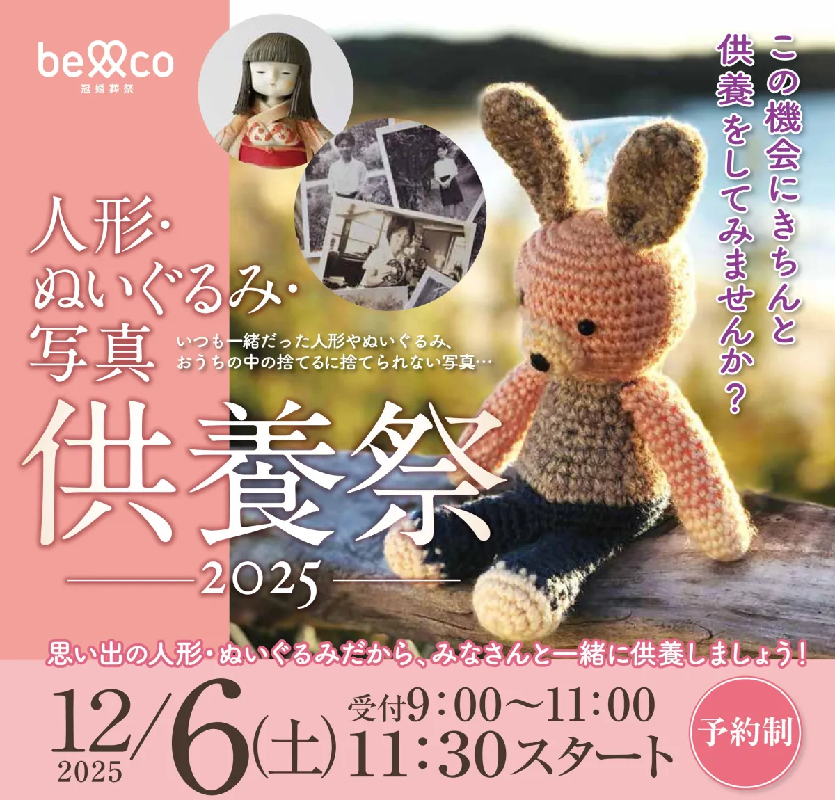 思い出の品々に感謝を捧げる「人形・ぬいぐるみ・写真 供養祭2025」が、2025年12月6日(土)にシティホール根室にて開催されます。長年愛されてきた人形やぬいぐるみ、また思い出の詰まった写真など、心を込めて供養するこのイベントは、多くの方から支持を受けています。