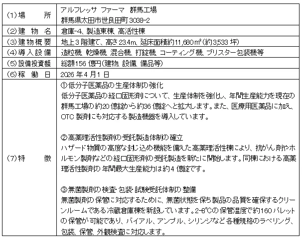 サードペディア百科事典: アルフレッサファーマ 医薬品製造 群馬工場