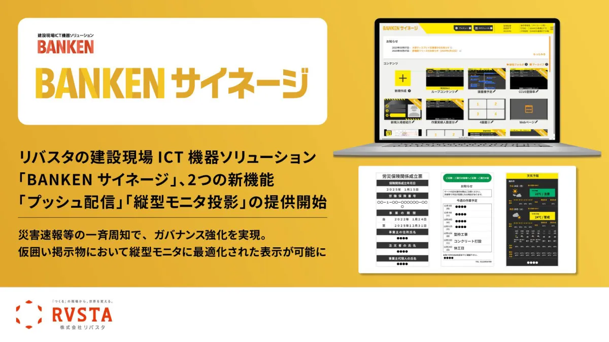 株式会社リバスタが展開する建設現場向けICT機器ソリューション「BANKEN サイネージ」に、最新の機能が追加されました。この進化は、建設の安全性を高め、作業効率を一層向上することを目的としています。
