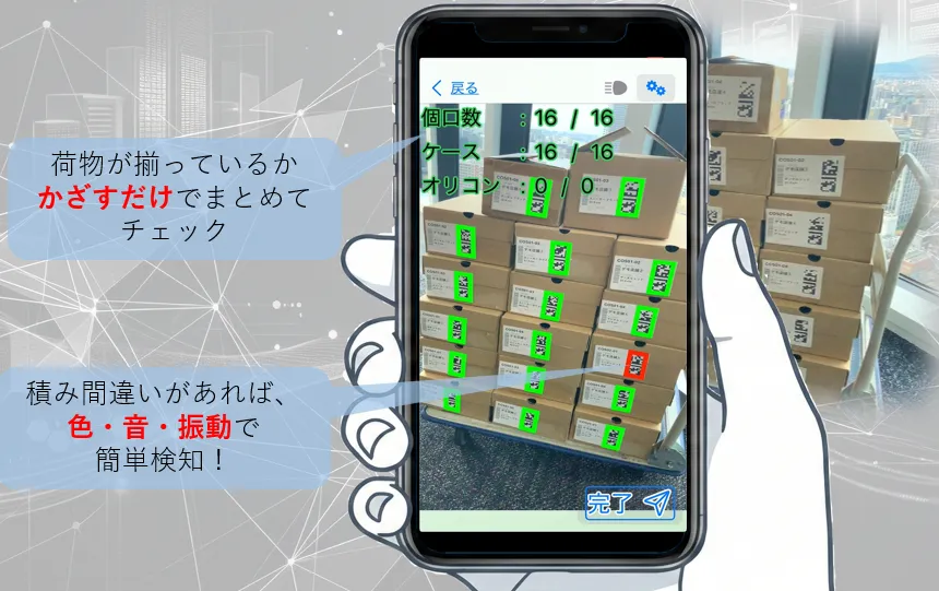 - - 複数コードの同時認識: 一度に多くのコードを読み取ることができ、積込み作業のスピードがアップ。