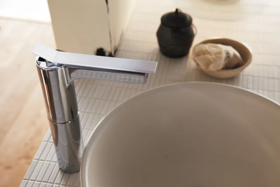これらのシリーズは「飾らず、美しい、水のように。」をコンセプトに、著名なデザイナー、森田恭通氏によってデザインされました。特に「SUTTO」は、従来の重厚感のあるハンドルの常識を覆し、洗面水栓における新しい形状を提案しています。薄板状の金属プレートに水量と温度を調整するレバーが本体に吸い付くようにデザインされており、上品さと革新性を兼ね備えています。すっきりとしたフォルムは、洗面所に洗練された空間を生み出します。