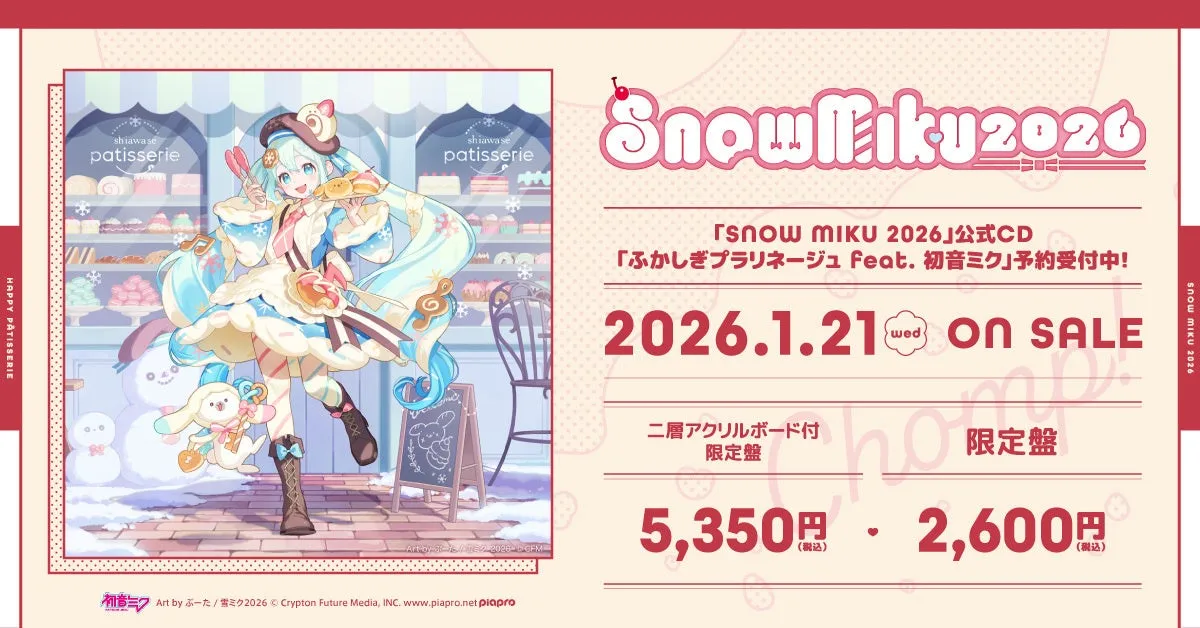 クリプトン・フューチャー・メディア株式会社が手掛ける人気ボカロキャラクター、雪ミク。彼女が北海道を応援するためのフェスティバル「SNOW MIKU 2026」に関連する新作CDが、2026年1月21日(水)に発売されます。今回のCDは、「ふかしぎプラリネージュ feat. 初音ミク」と名付けられ、予約受付が全国のCD取扱店でスタートしています。
