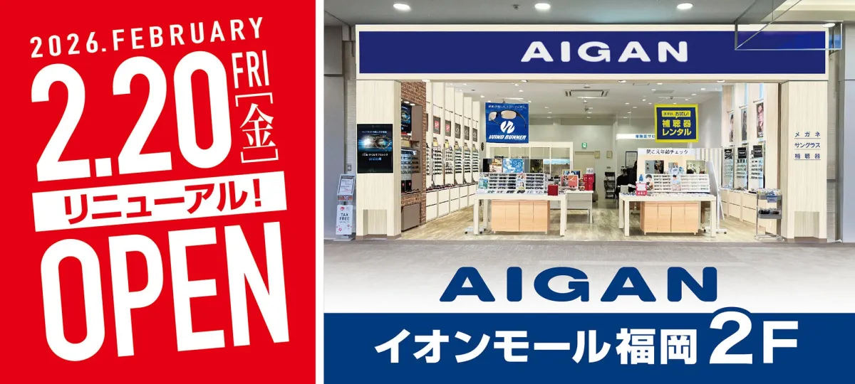 2026年2月20日、イオンモール福岡2階に新たに生まれ変わった「AIGAN イオンモール福岡店」がリニューアルオープンしました。愛眼株式会社が運営するこの店舗は、「地域のお客様に便利で快適な体験を提供する」とのコンセプトのもと、メガネと補聴器の専門店として進化しています。