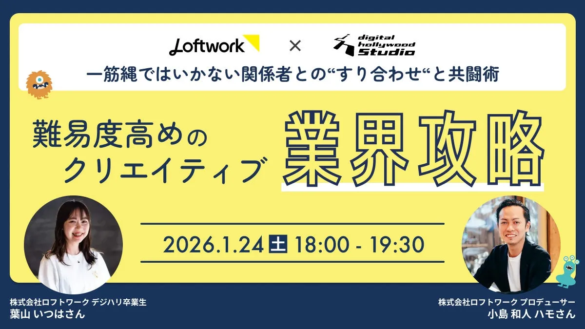 2026年1月24日(土)に、デジタルハリウッド大阪本校にて、未経験者や駆け出しクリエイターを対象としたイベント「難易度高めのクリエイティブ業界攻略。~一筋縄ではいかない関係者との“すり合わせ“と共闘術~」が開催されます。このイベントは、業界について知りたい方々にとって、理論と実践を兼ね備えた貴重な機会です。