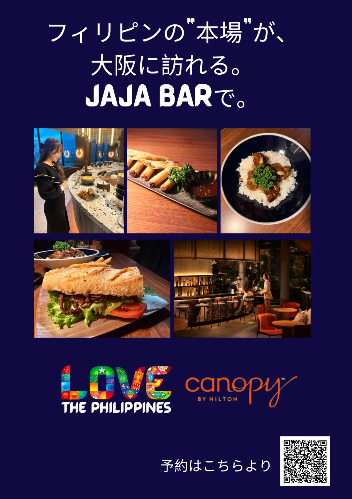 フィリピンの観光省、大阪事務所(DOT Osaka)が主催する「フィリピンフードフェア」が、2025年12月5日から19日までの期間、大阪市北区の「JAJA BAR」(Canopy by Hilton Osaka Umeda内)で開催されます。このイベントは、「食を通してフィリピンを旅する2週間」をテーマに、フィリピンの食文化の魅力を日本の皆さまに伝える特別なダイニング体験です。