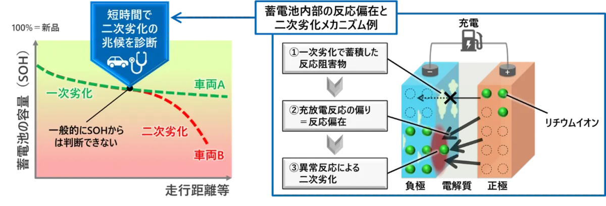 大阪ガスとその子会社のKRIが、電気自動車(EV)向けに新たな蓄電池劣化診断技術を開発しました。この技術は、急激な容量低下を示す「二次劣化」の兆候を短時間の充電で識別できるもので、業界初の試みです。