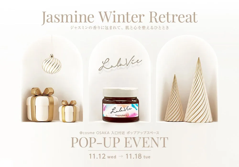 2025年11月12日から18日まで、@cosme OSAKAにて実施される「Jasmine Winter Retreat」は、スキンケアブランド『ララヴィ』が主催する特別なポップアップイベントです。ここでは、日常の喧騒を忘れ、心身をリフレッシュできる「リトリート」の空間が用意されています。