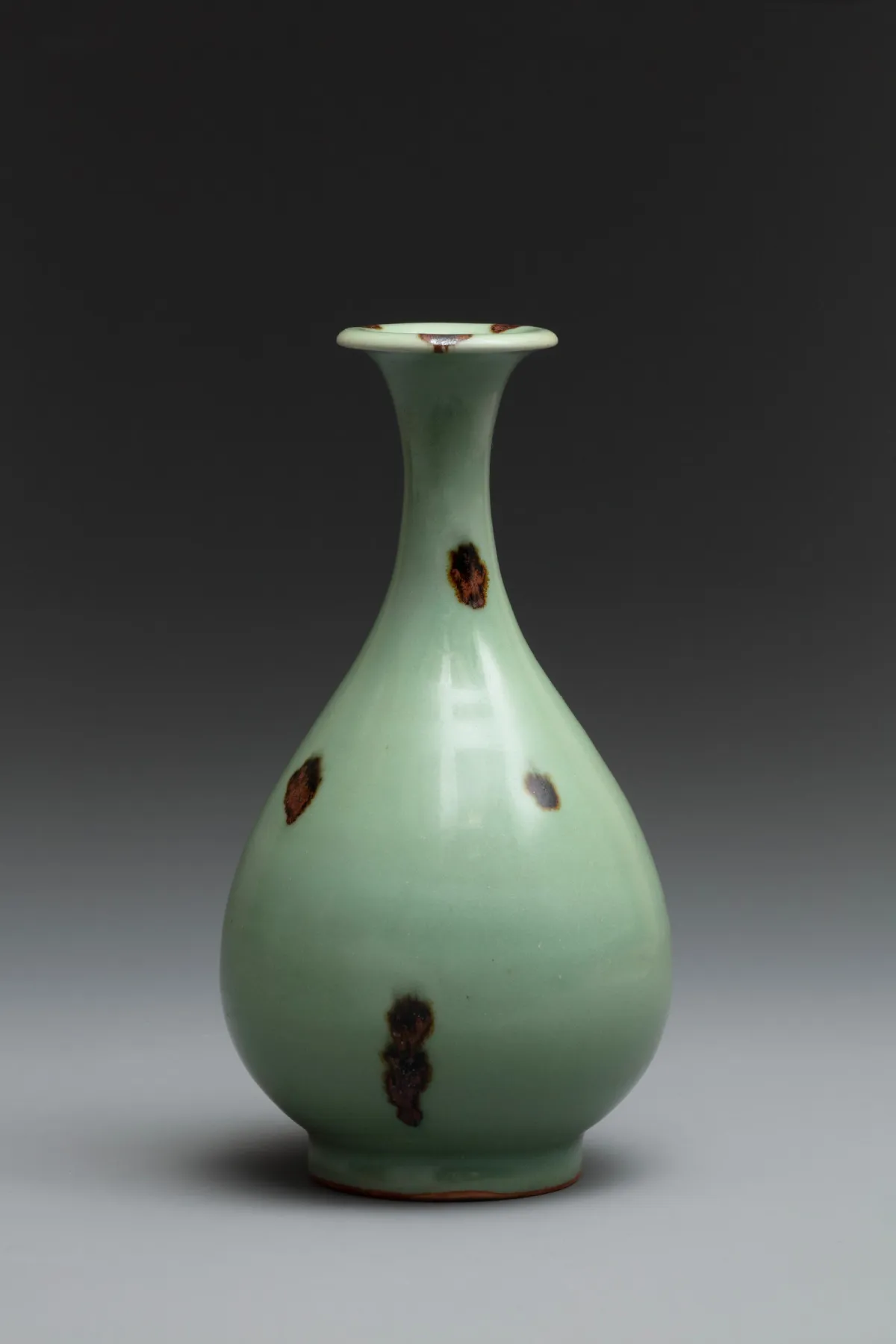 この作品は、元代の龍泉窯で制作されたもので、国宝に比べるとわずかに小型な造形となっています。鉄斑装飾も特徴的で、両者が同時期に制作されたと考えられています。