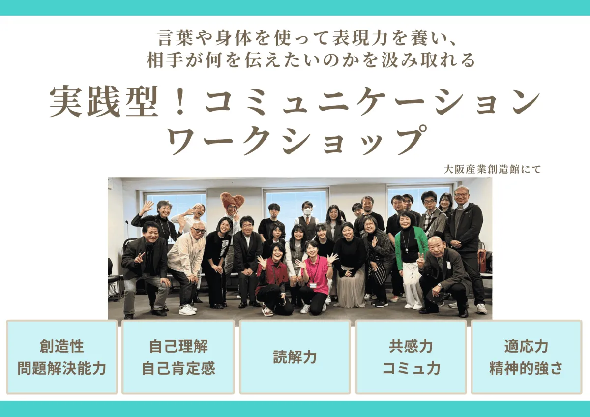 2025年11月3日、大阪産業創造館で「表現コミュニケーションワークショップ」が行われ、経営者や幅広い年齢層の参加者約30名が一堂に会しました。
