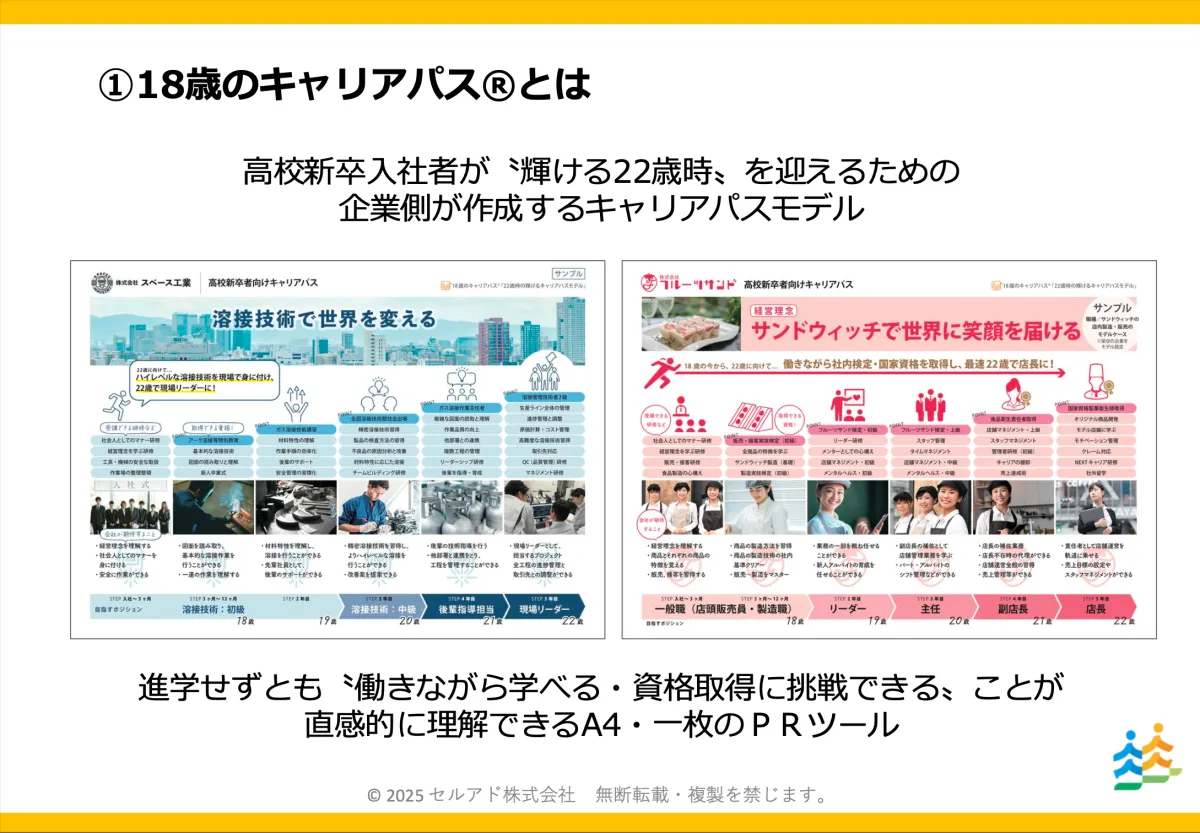 セルアド(18歳新卒ラボ)は、創業以来、高校での就職指導経験と企業での採用広報経験を融合させたサービスを提供しています。「18歳のキャリアパス®︎」の概念は、企業の育成姿勢を明確に可視化するものであり、多くの企業からは「高校訪問における先生の反応が変わった」「応募が増えた」といった好評を得ています。