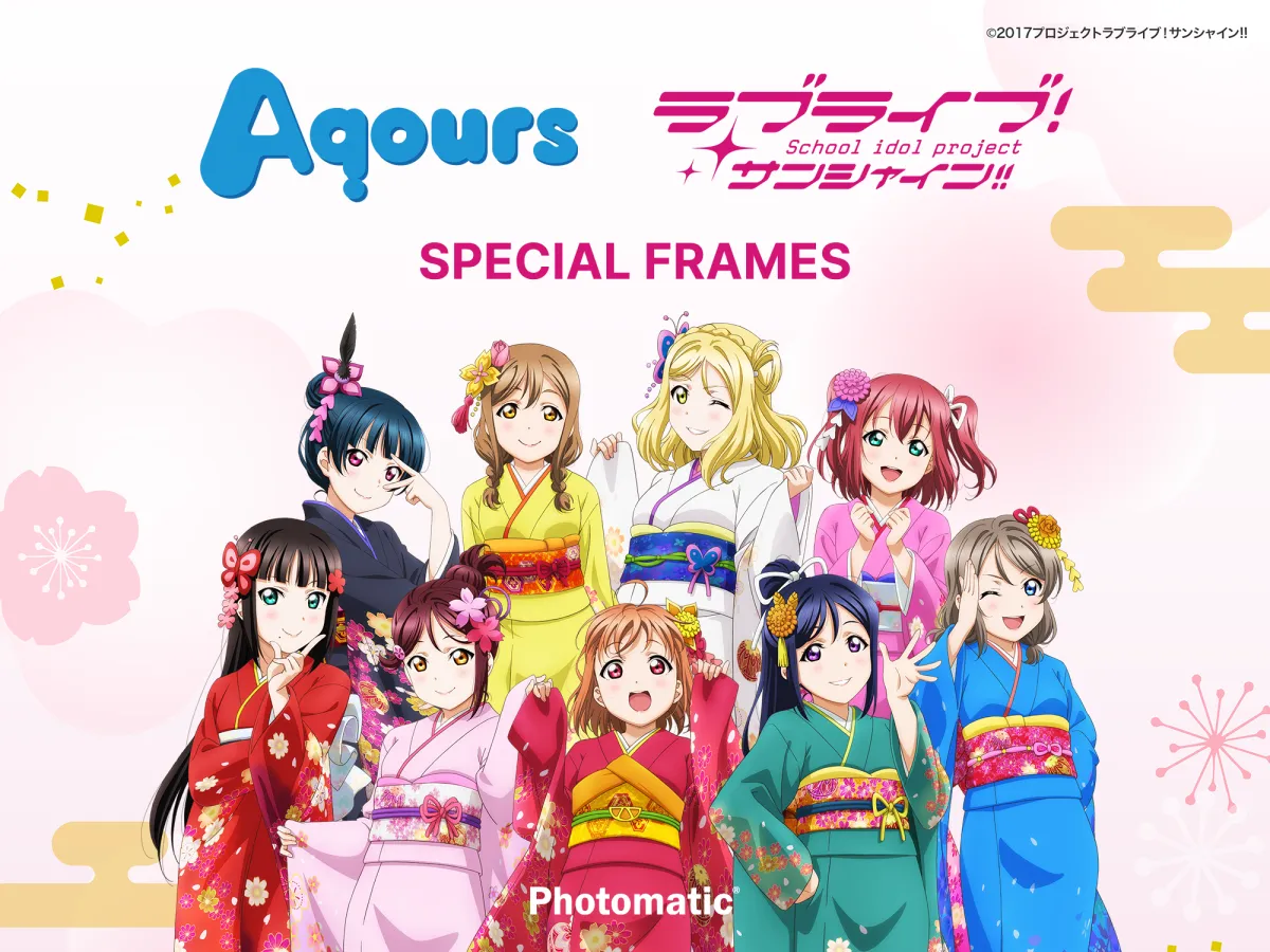 新年の訪れを祝う特別な瞬間を、Aqoursの華やかなコラボフレームと共に記録しましょう。ぜひ、ご友人や家族とともに、思い出に残る撮影を楽しんでください。詳しくは、Photomaticの公式ホームページやSNSでチェックしてください。