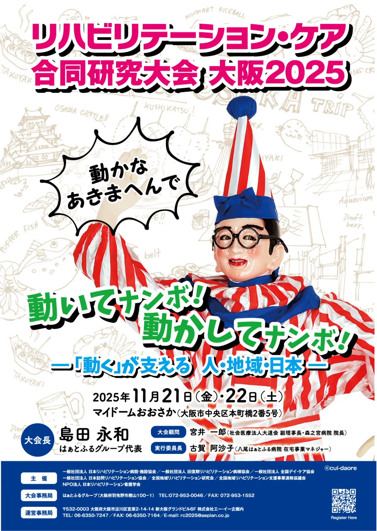 2025年11月21日(金)と22日(土)の2日間、大阪市のマイドームおおさかで「リハビリテーション・ケア合同研究大会 大阪2025」が開催されます。この大会には、全国から約2,000名の医療、リハビリ、介護、福祉の専門職が集まり、リハビリテーションとケアに関する最先端の研究成果や実践例を報告します。